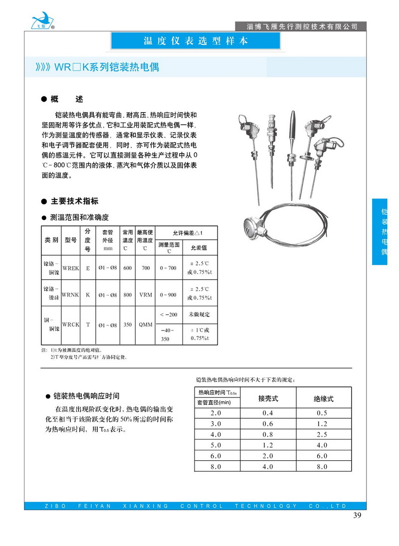 鎧裝熱電偶具有能彎曲、耐高壓、熱響應(yīng)時(shí)間快和堅(jiān)固耐用等許多優(yōu)點(diǎn).它和工業(yè)用裝配式熱電偶一樣,作為測量溫度的傳感器,通常和顯示儀表.記錄儀表和電子調(diào)節(jié)器配套使用,同時(shí),亦可作為裝配式熱電偶的感溫元件。它可以直接測量各種生產(chǎn)過程中從0C~800℃范圍內(nèi)的液體、蒸汽和氣體介質(zhì)以及固體表面的溫度。