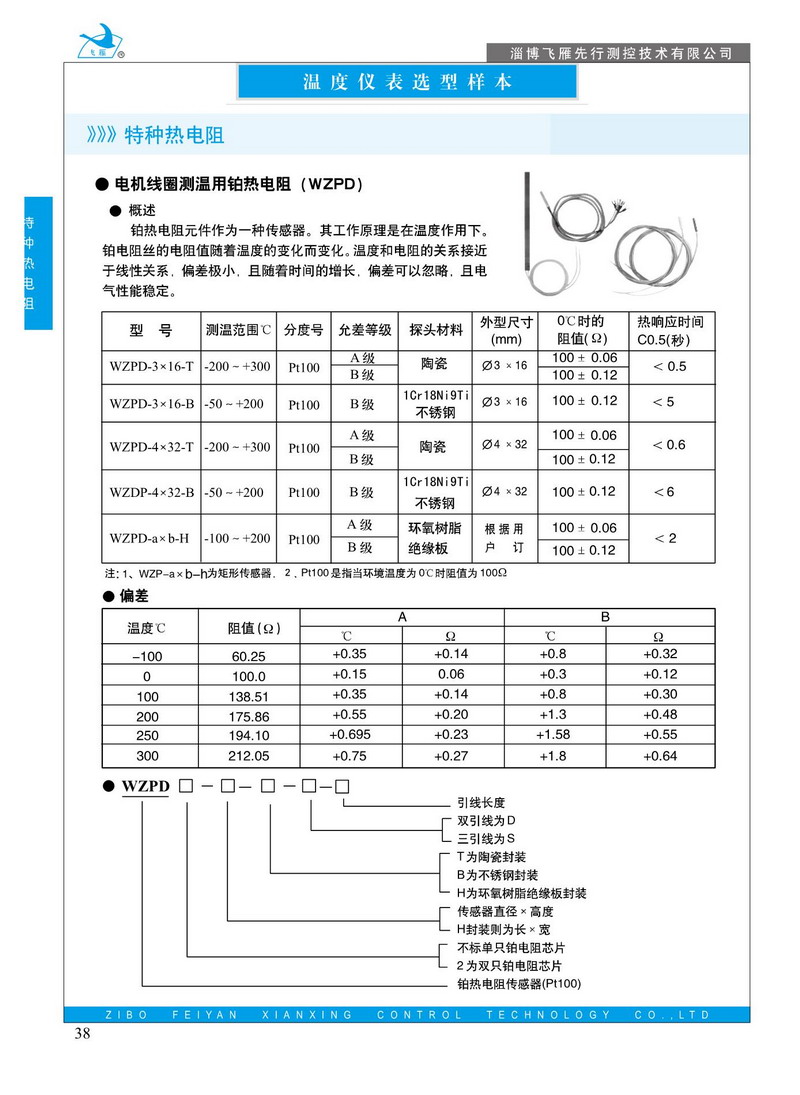 WZPD系列電機線圈測溫用鉑熱電阻