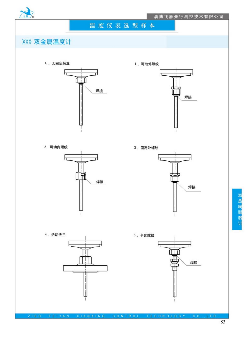 雙金屬溫度計是=用繞成螺旋形的雙金屬片作感溫元件,并將它裝在保護管內(nèi),一端固定(固定端).另一端E自由端F連接在一根鋼絲上,鋼絲末端裝有指針。當溫度發(fā)生變化時,感溫元件的自由端隨即轉(zhuǎn)動.從而鋼絲帶動指針產(chǎn)生角位移.在表度盤上指示出溫度的變化:萬向型表則通過轉(zhuǎn)向機構(gòu)帶動指針,由于感溫元件與溫度變化呈線性關(guān)系,所以指針所指示的位置即是被測溫度值。表殼材料有鐵皮鍍鉻和不銹鋼:測溫元件還具有抽芯式結(jié)構(gòu)。萬向型溫度計的表頭部分借助于萬向支架,轉(zhuǎn)角機構(gòu)等元件,可以由角型到直型或從直型到角型任意角度轉(zhuǎn)動。