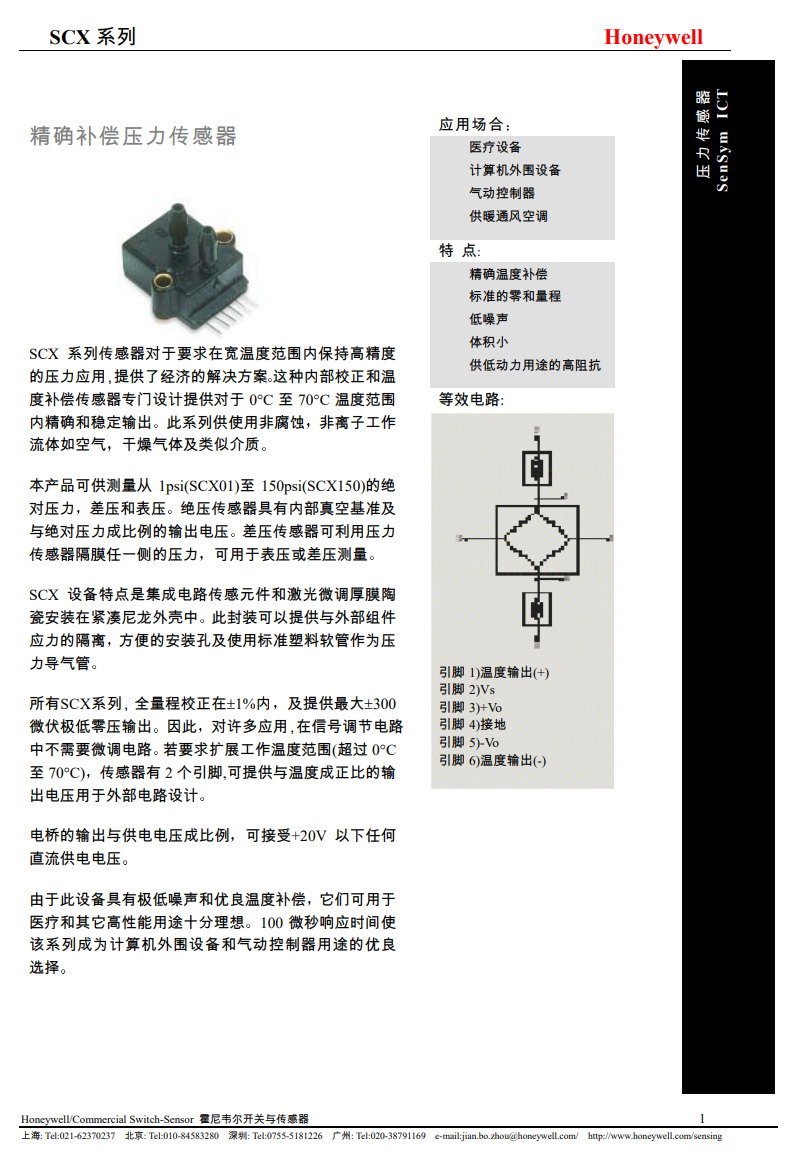 SCX系列傳感器對于要求在寬溫度范圍內(nèi)保持高精度的壓力應(yīng)用,提供了經(jīng)濟的解決方案。這種內(nèi)部校正和溫度補償傳感器專門設(shè)計提供對于0℃至70°℃溫度范圍內(nèi)精確和穩(wěn)定輸出。此系列供使用非腐蝕,非離子工作流體如空氣,干燥氣體及類似介質(zhì)。